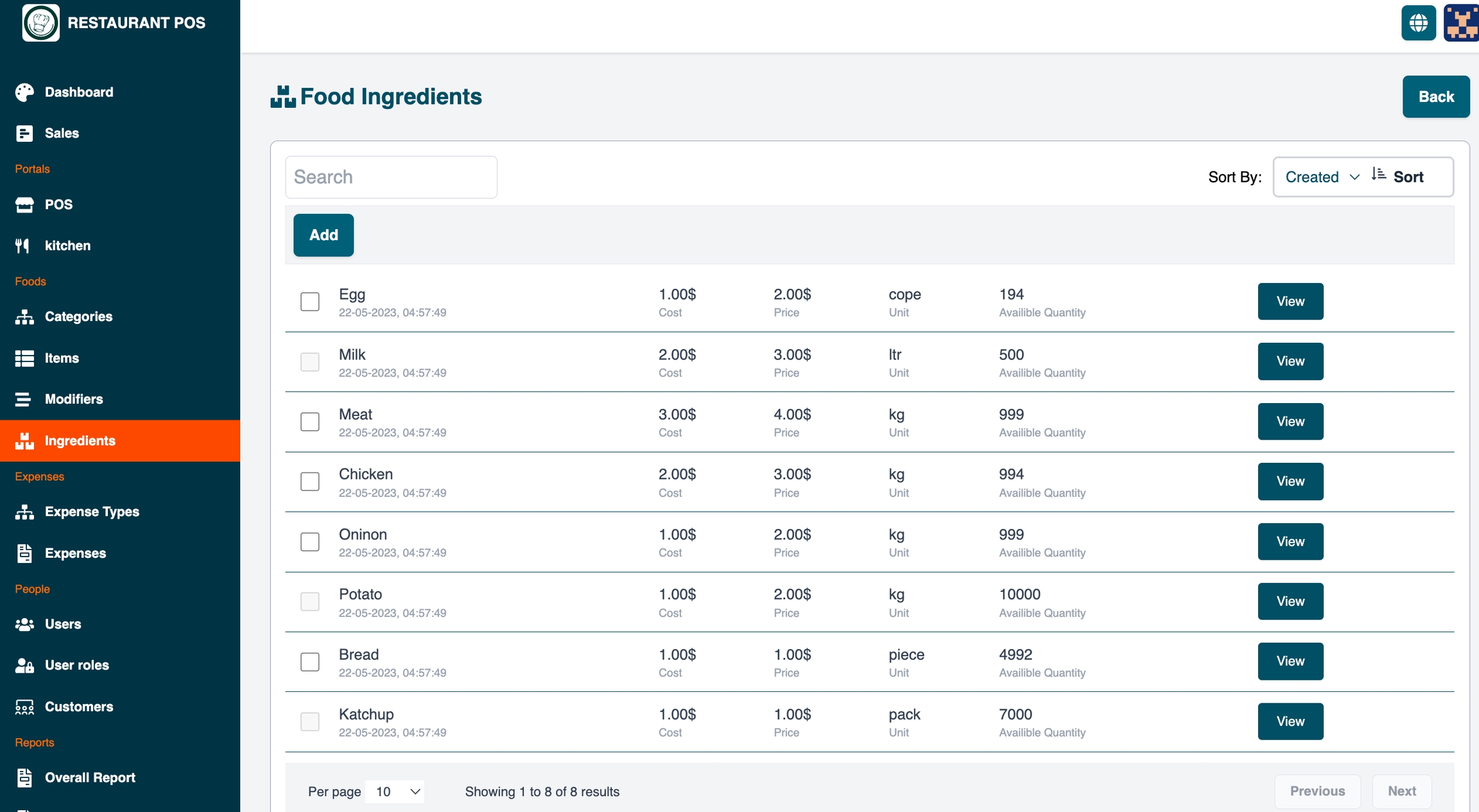 Sidebar > Food Management > Ingredients