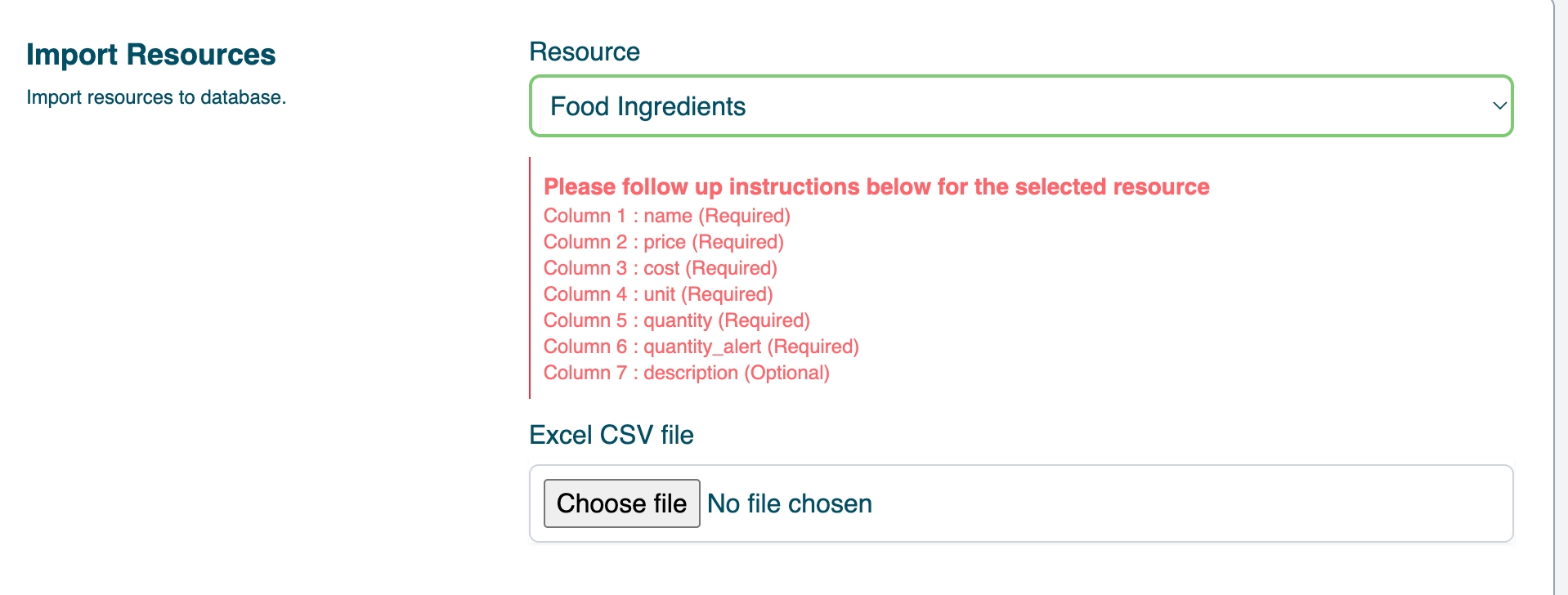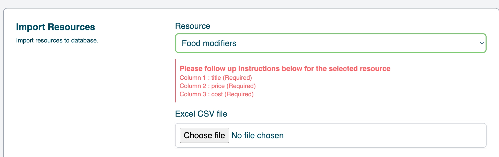 Each import option provides a downloadable sample CSV template so you can match the correct column headers and format. Make sure your CSV is clean, correctly formatted, and contains all required fields before uploading.