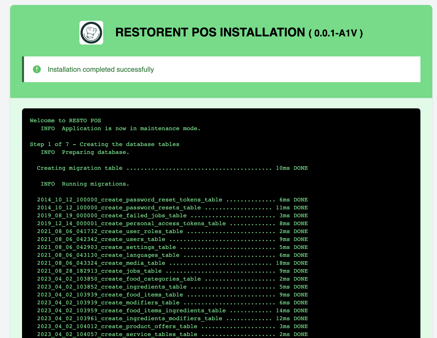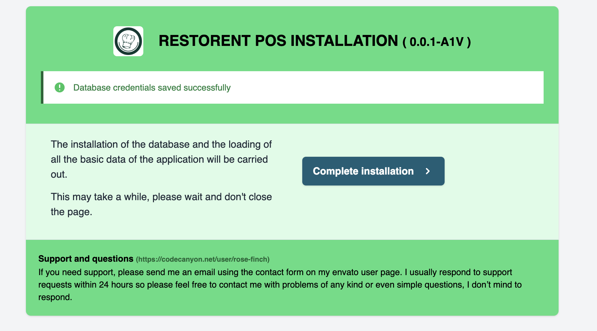 If your filled database credentials are correct installer will run and install. if everything goes smoothly,  you will be redirected to the login page (use the default log detail to log in).