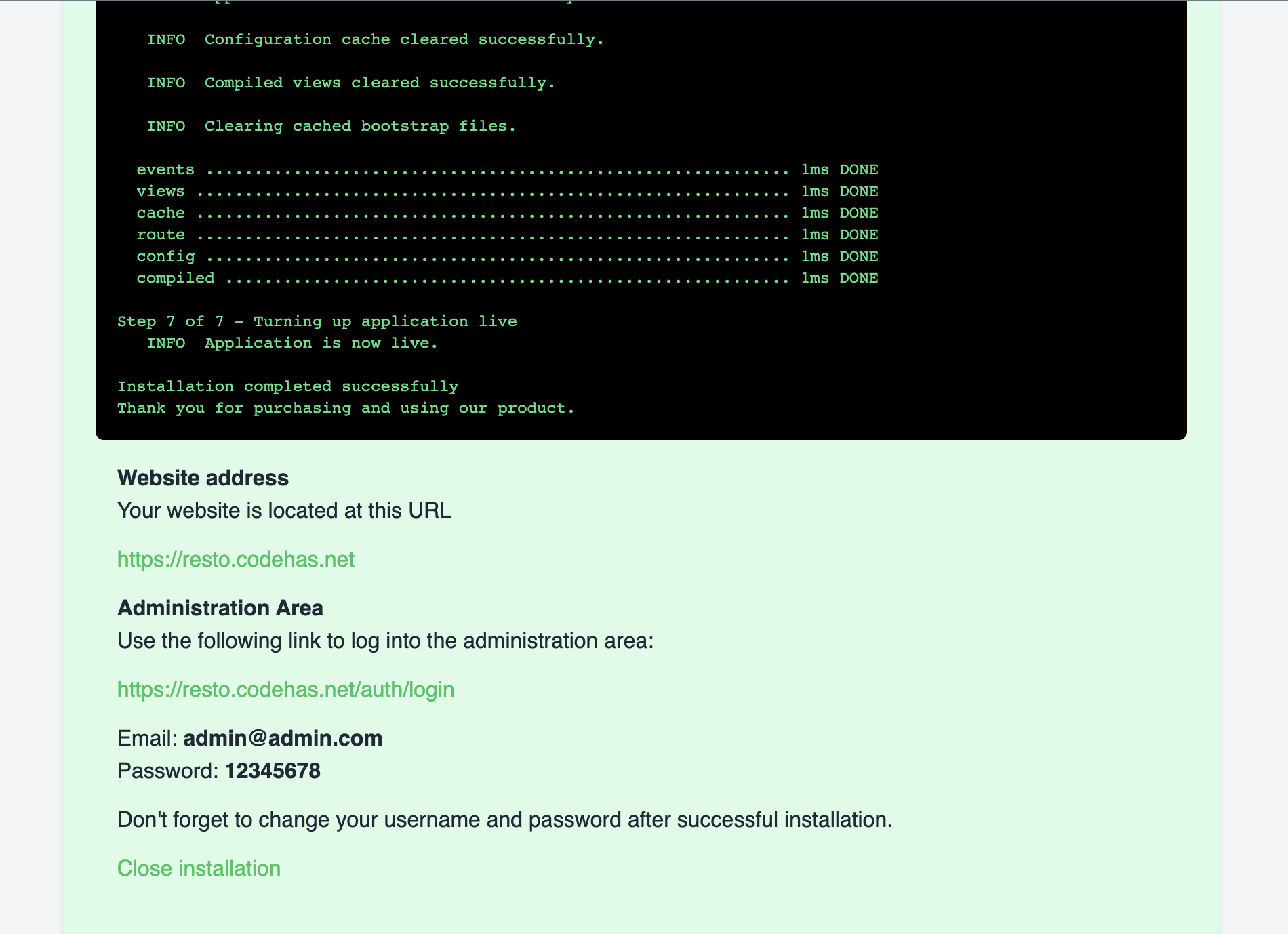 Log in by using the above default credentials, and don't forget to change your email/password from the user management