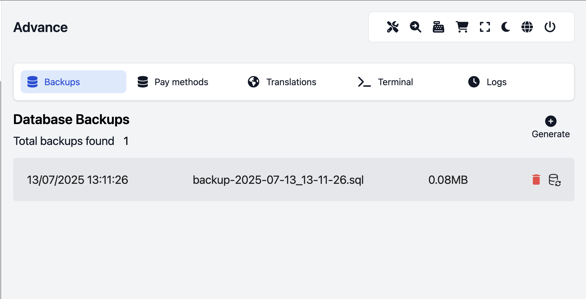 The Database Backup & Restore feature ensures your business-critical data is protected and recoverable. Whether you’re preparing for system updates, migrations, or just safeguarding against accidental data loss, this tool gives you peace of mind with just a few clicks.