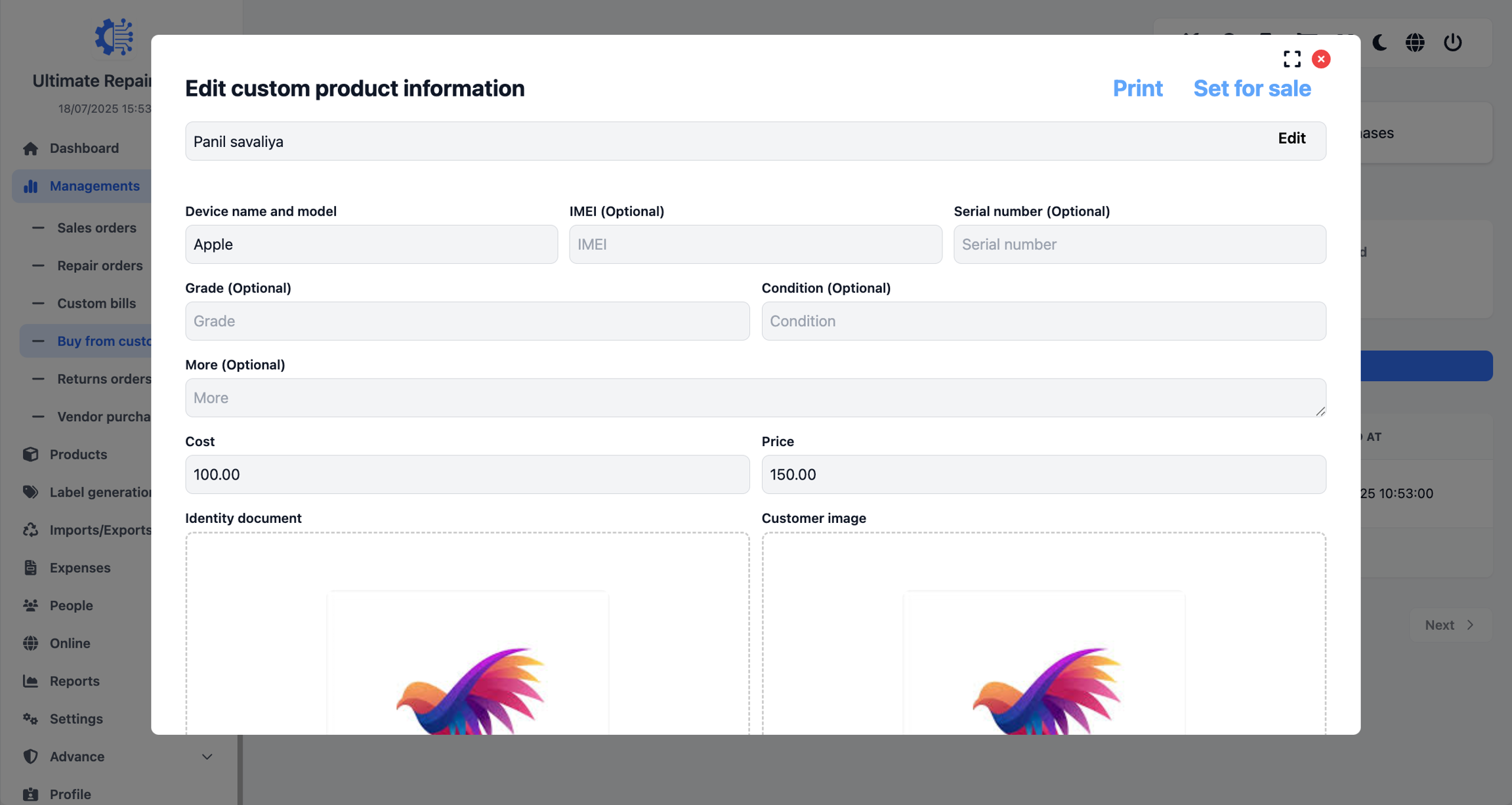 Whether you’re buying used phones, laptops, or accessories from walk-in customers, this feature ensures the process is secure, traceable, and customer-friendly.