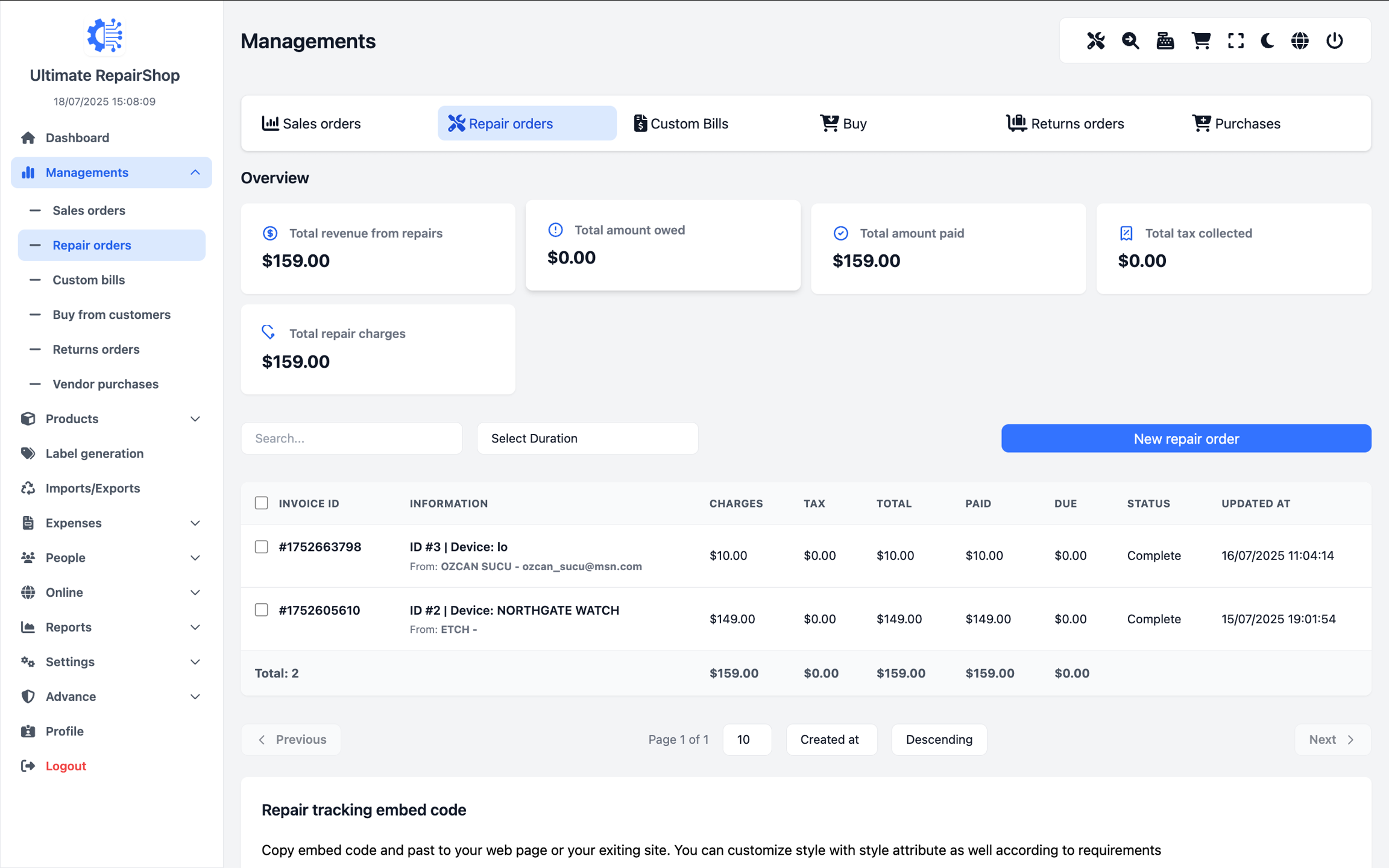 π View & Manage Repair Orders