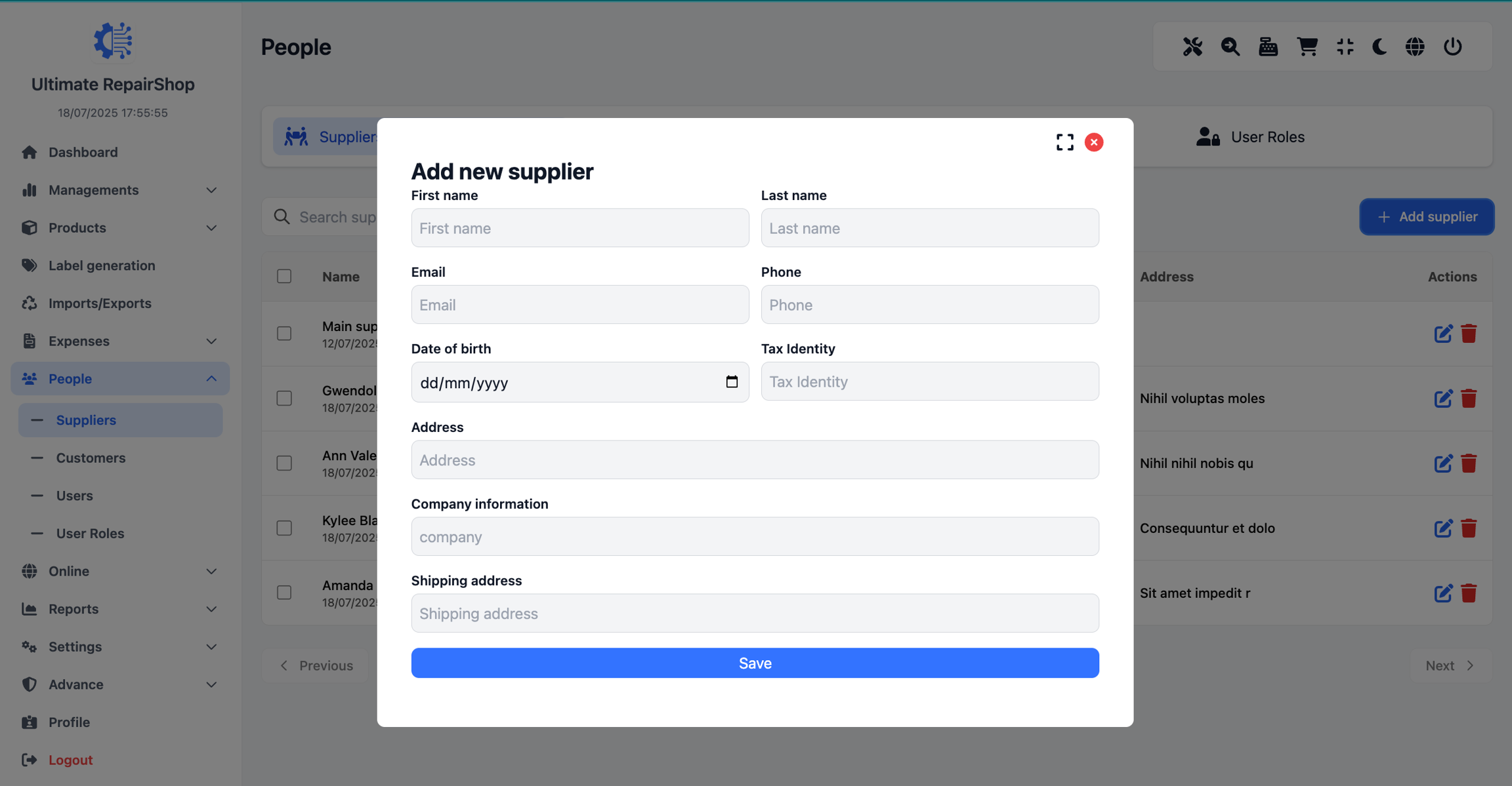 You can add new suppliers through a simple form, collecting essential contact and business details. The form includes: