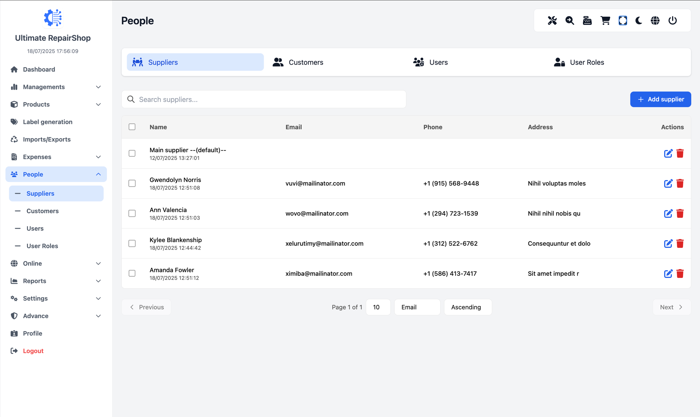 🗑 Delete unused or test suppliers