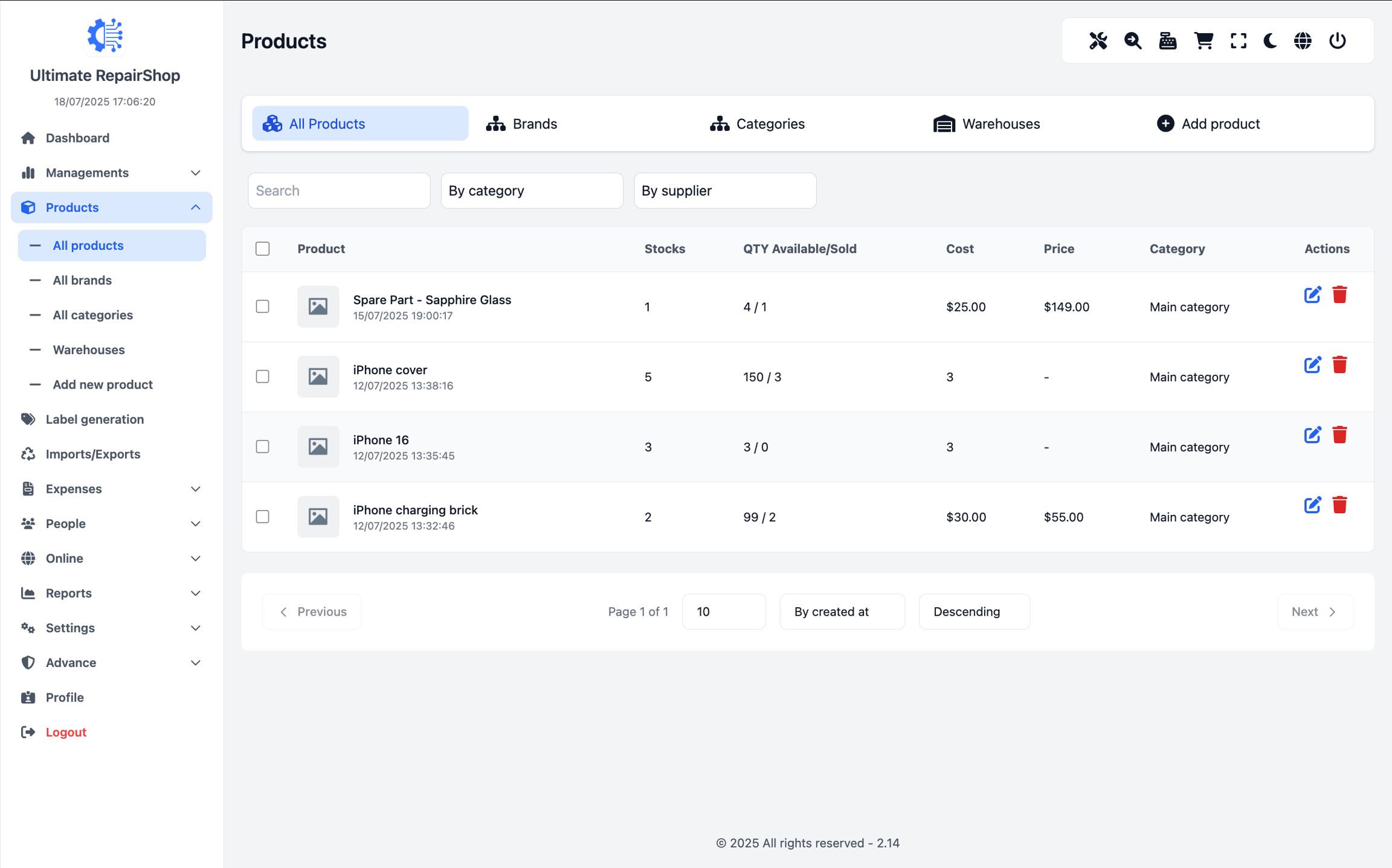 The Products Management module is the powerhouse of your inventory system. It’s designed to help you create, organize, and track every item you sell—from simple products to complex serial-based variants—with total precision.