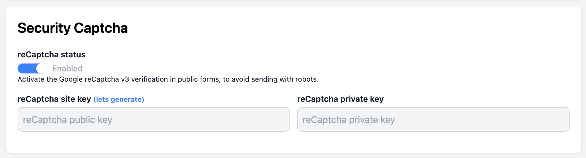 reCaptcha Secret Key
