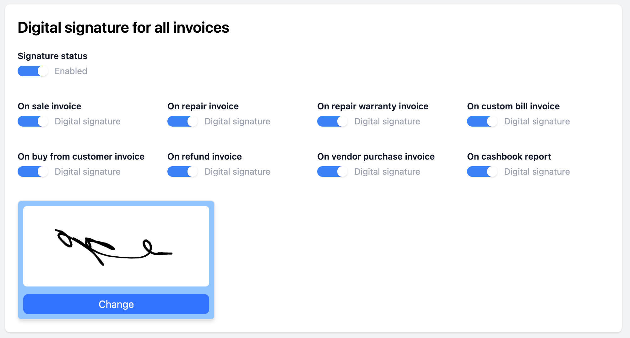 Enable secure digital signatures on all printed or exported invoices: